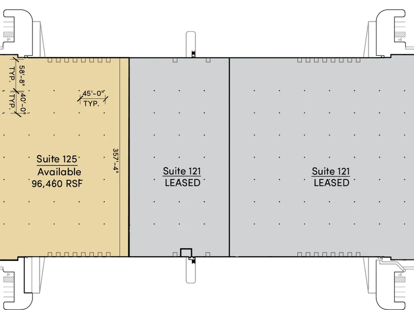 40’ x 45’ column spacing; 60’ speed bays