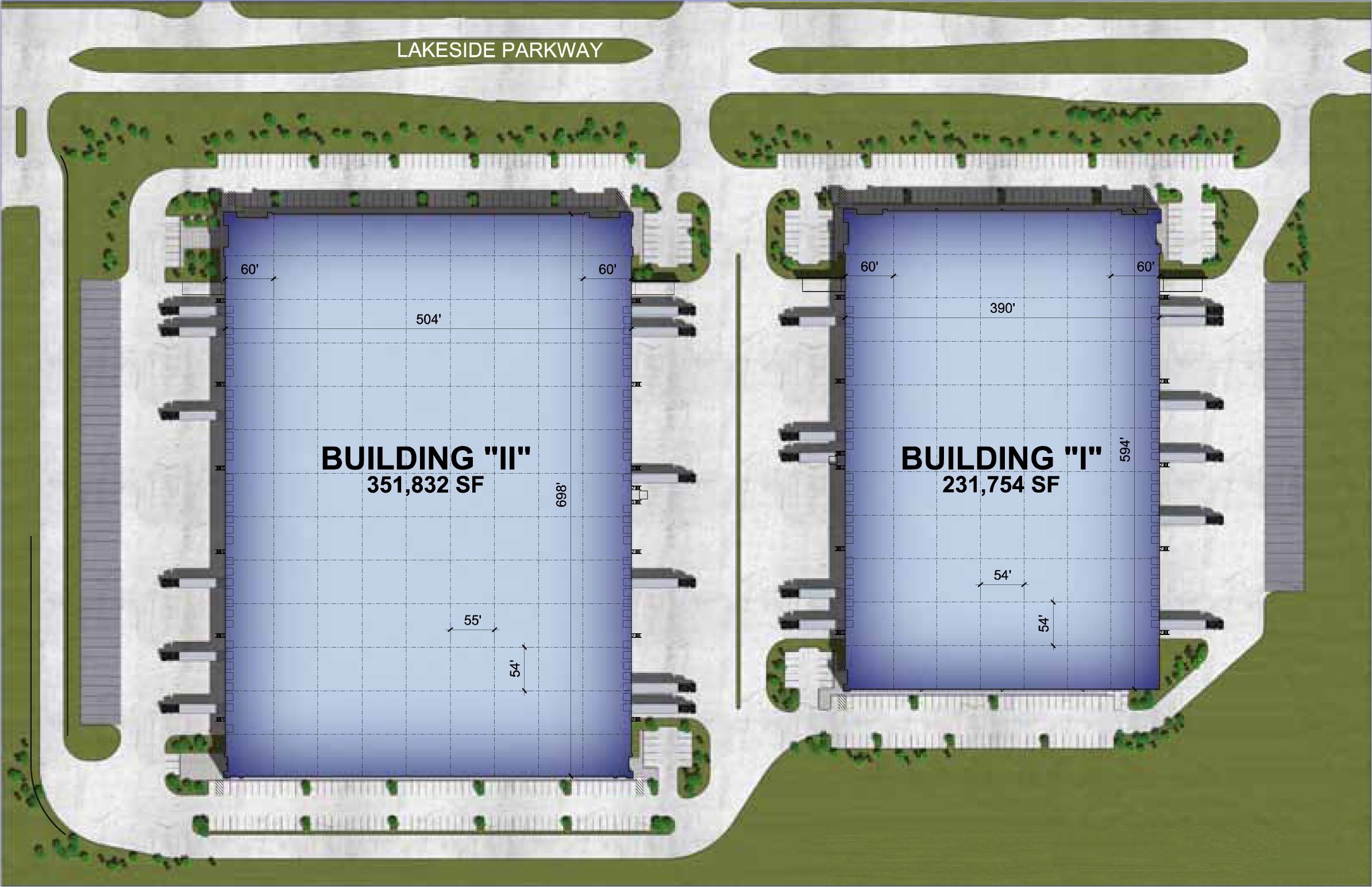 54’ x 54’ column spacing with 60’ staging bays