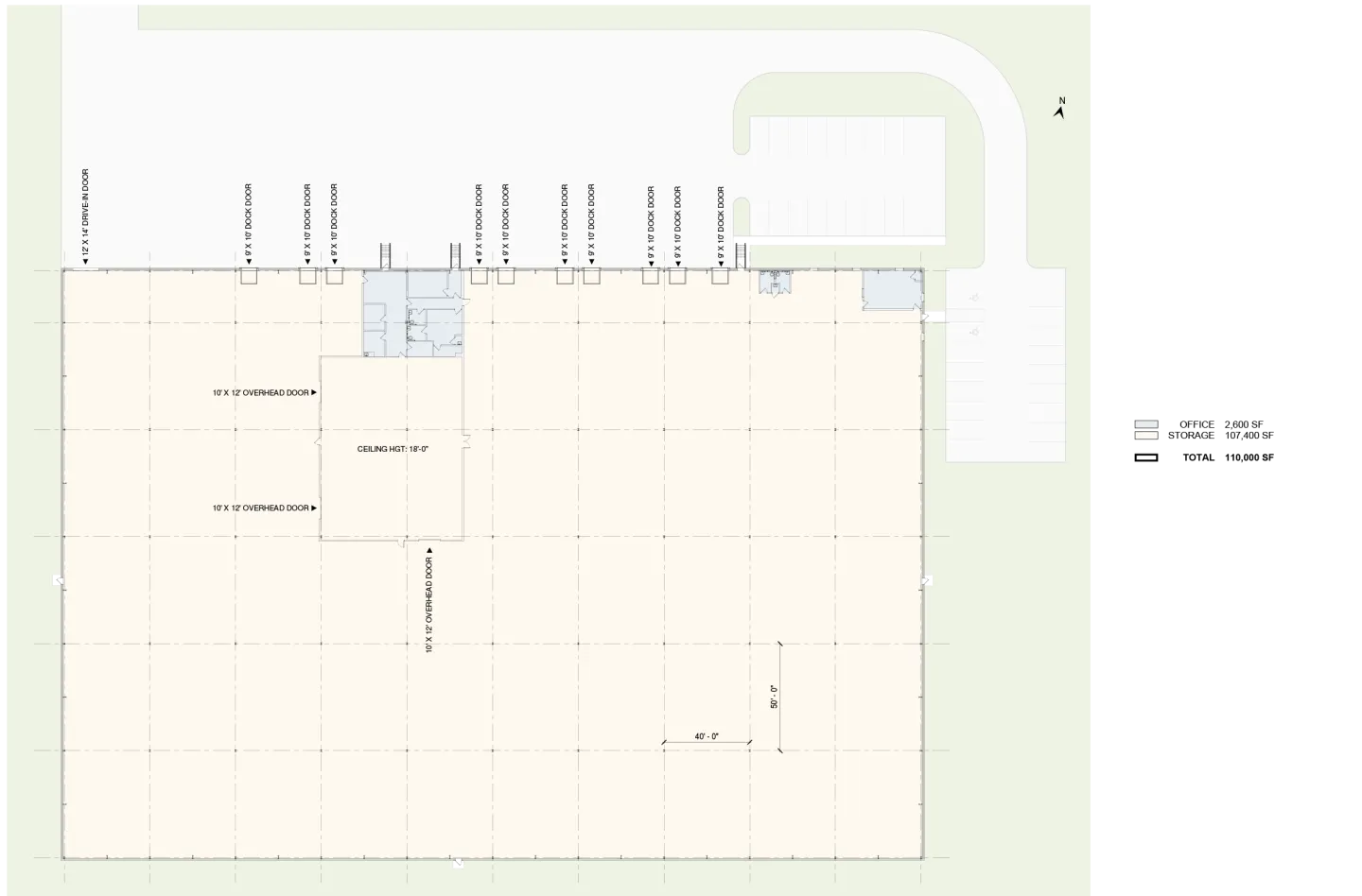 Column Spacing: 50’ x 40’