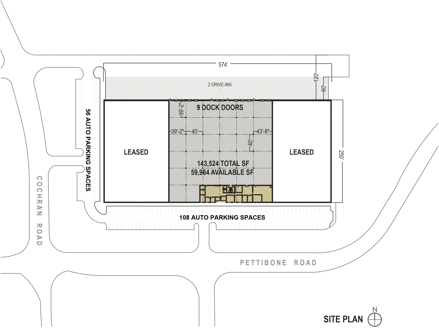 574’ x 250’ building dimensions