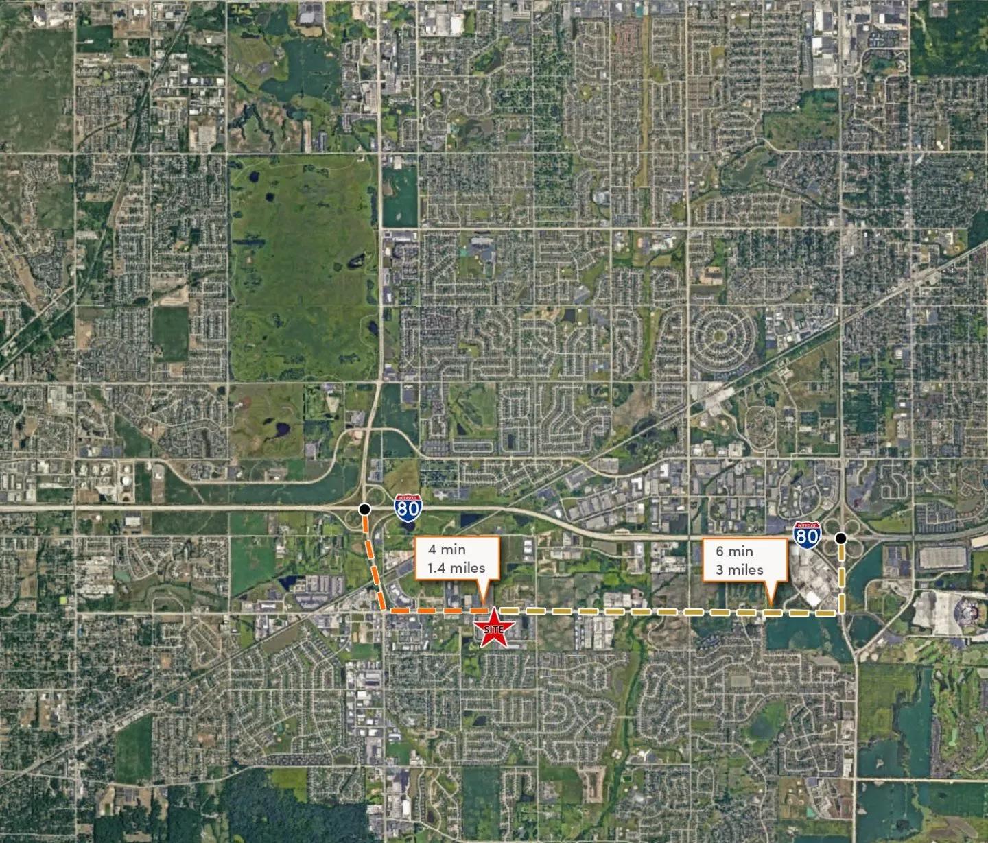 - Accessible via two, four way interchanges on I-80