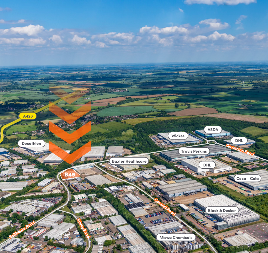 Situated on Brackmills Industrial Estate and to the south of Northampton, Brackmills 45 offers easy access to major transport routes, including the A45, A14 and junctions 15 & 15A of the M1, making it an ideal location for industrial use.