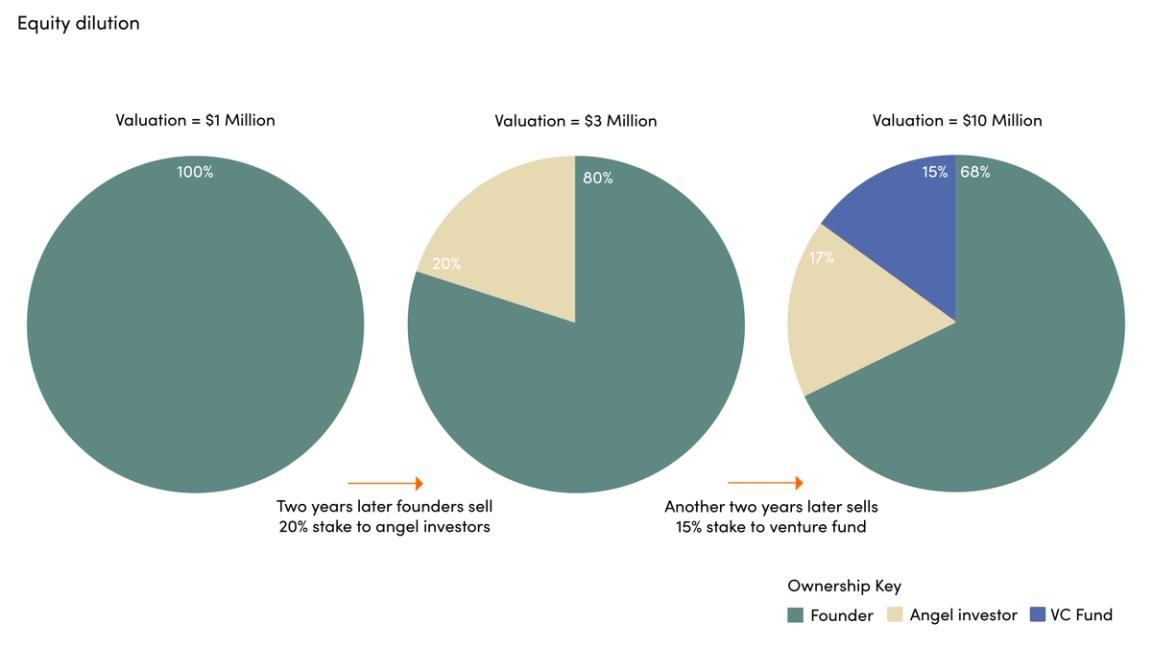 If, say, the founder of a company raises money from an angel investor for the first time, and the investor acquires a 20 percent stake, the company issues new shares to its investors, diluting the founder’s equity from 100 percent to 80 percent.