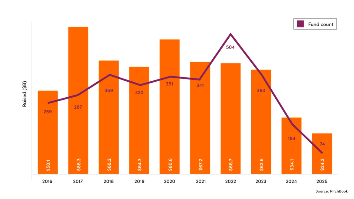 However, in recent years, data shows the product has fallen out of favor. In 2025, only $24.2bn was raised by private market fund of funds, compared to $80.6bn in 2020, according to PitchBook data. PitchBook analysts wrote that detractors of the product often cite multiple fee layers as a reason for higher costs and this reason partially explained the drop off in investor interest.