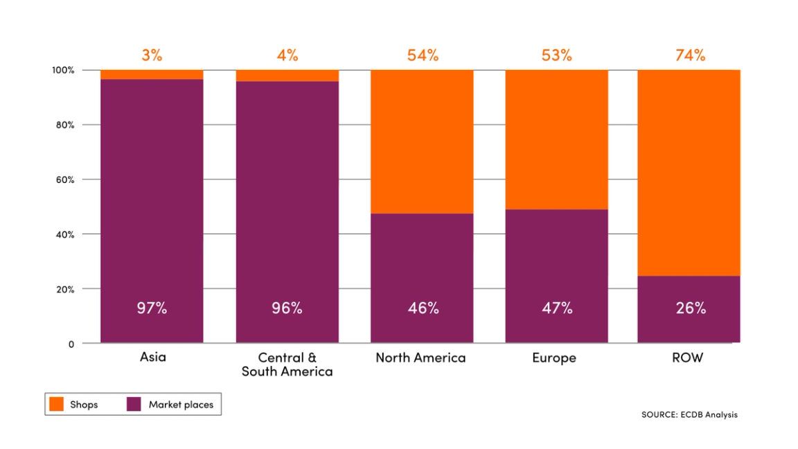 Globally, 72 percent of e-commerce revenue was transacted via online marketplaces such as eBay or Temu last year, with just 28 percent from online stores, according to ECDB, a data analytics company. In Asia, marketplaces accounted for a massive 97 percent of revenue, whereas in Europe and North America, the split was closer to 50/50.