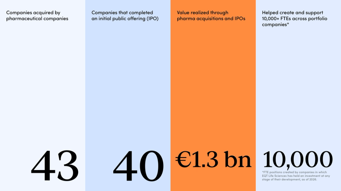 We’ve come a long way since the 1998 launch of LSP, the predecessor to EQT Life Sciences, supporting dozens of companies developing treatments aimed at cancer, immune disorders, dementia and an array of other devastating diseases. Consider just a few: